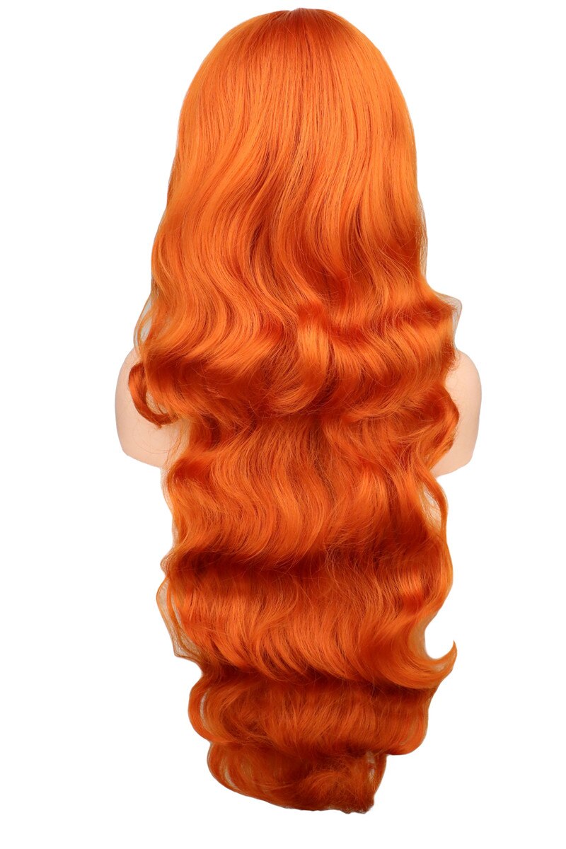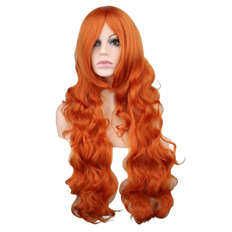 Peluca hecha a mano de pelo sintético ondulado largo naranja