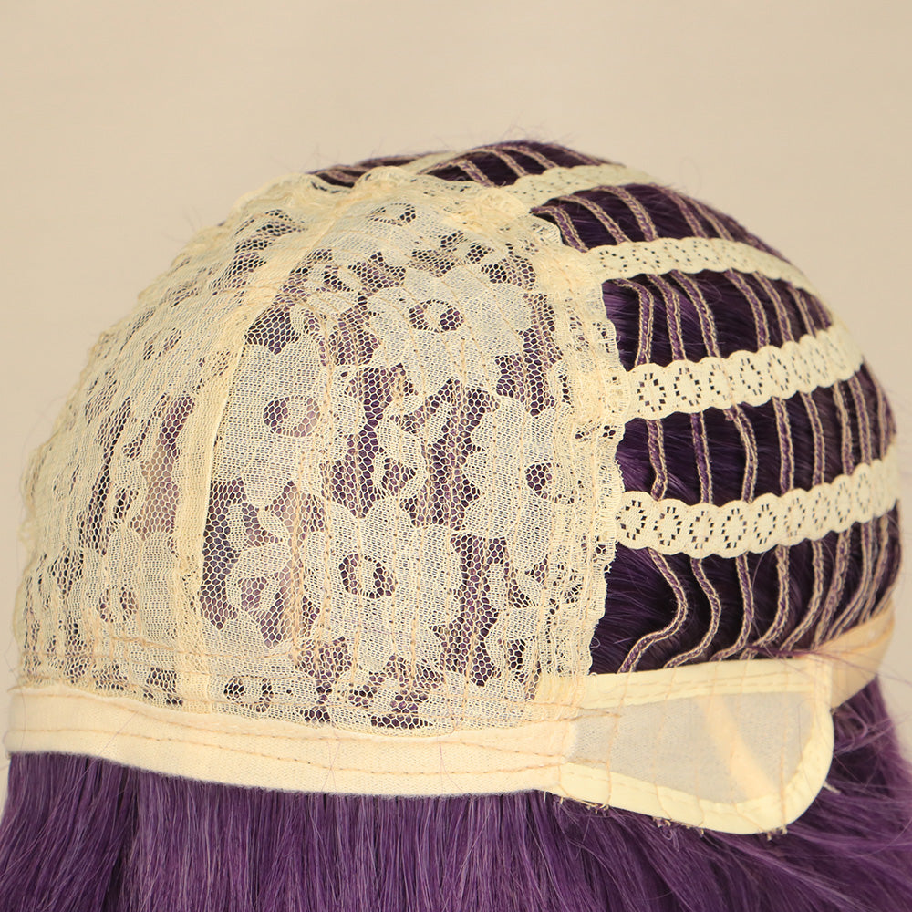 Peluca hecha a mano de pelo sintético, liso corto en color lila.