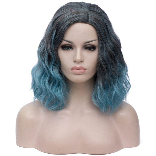 Peluca de pelo sintético ondulado mediano largo hecho a mano