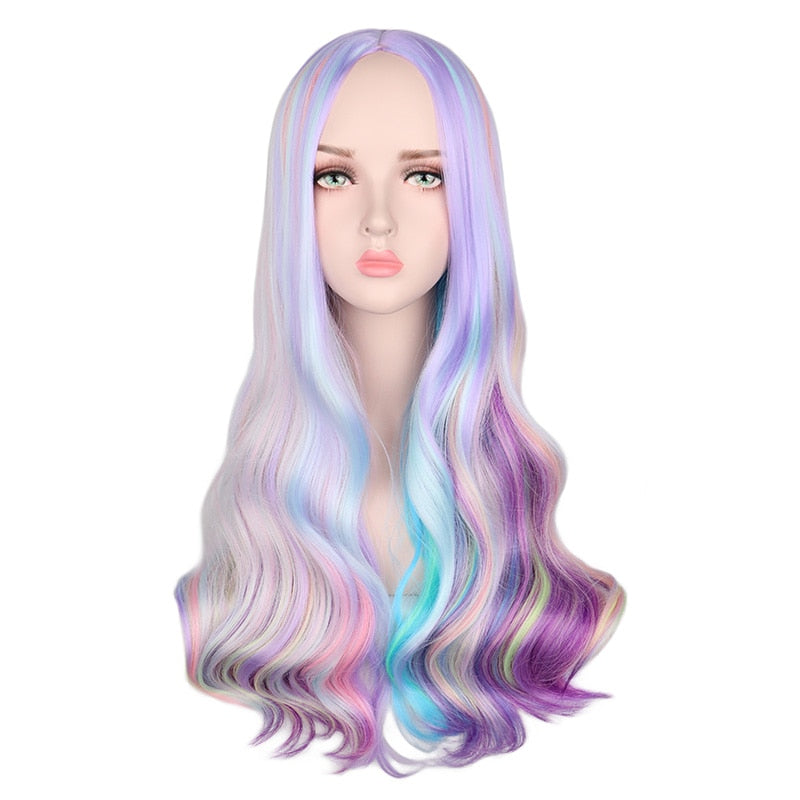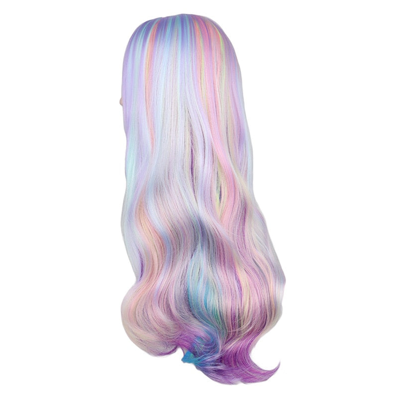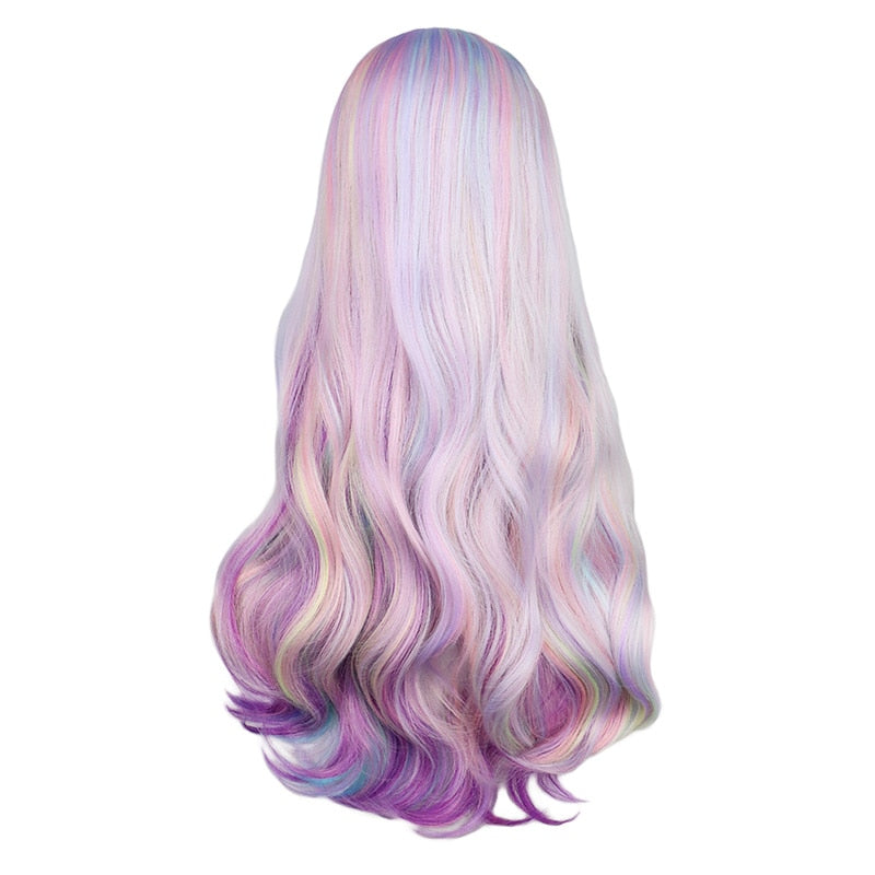 Peluca hecha a mano de pelo sintético ondulada larga multicolor