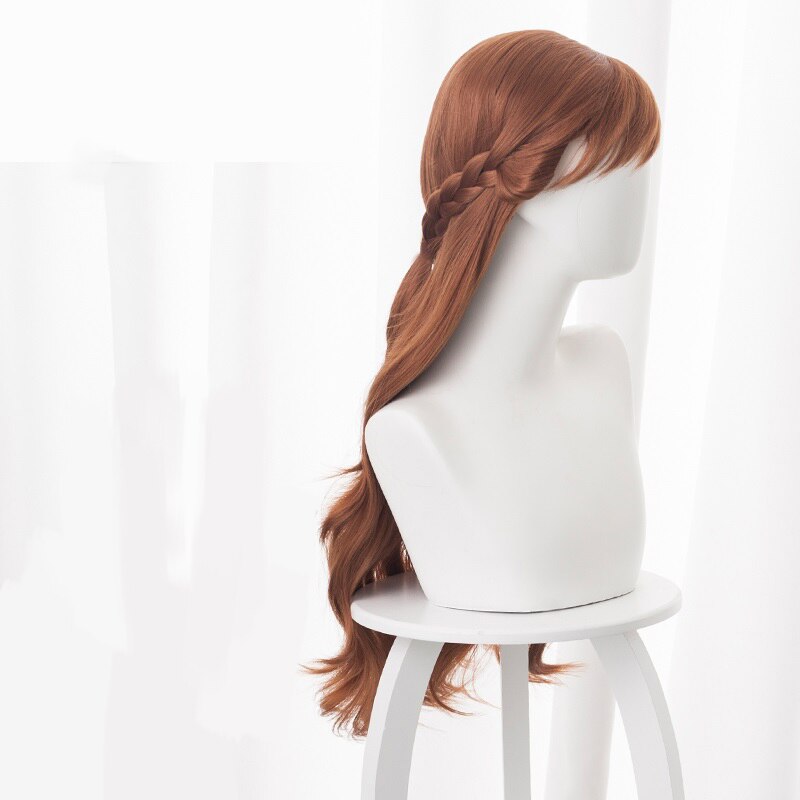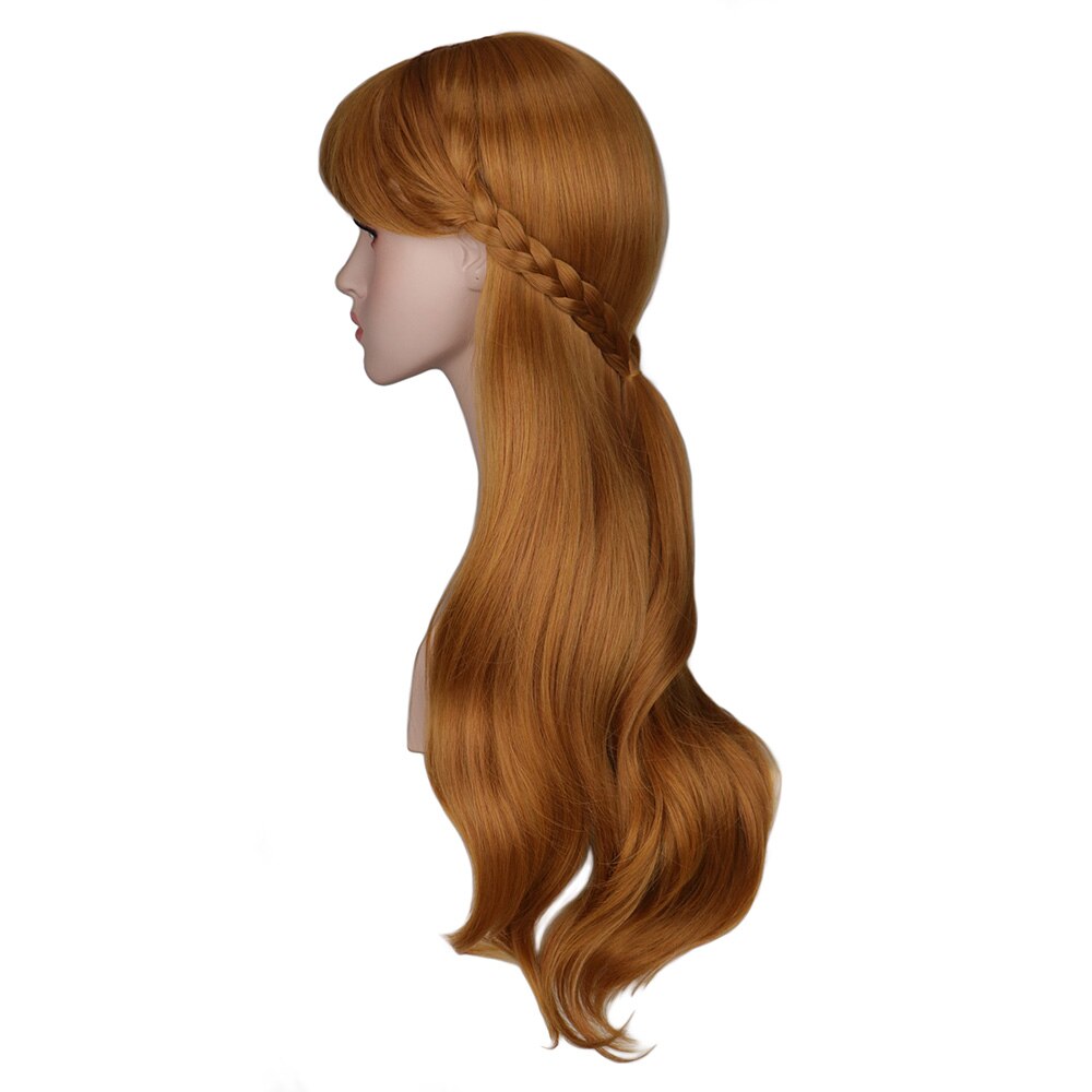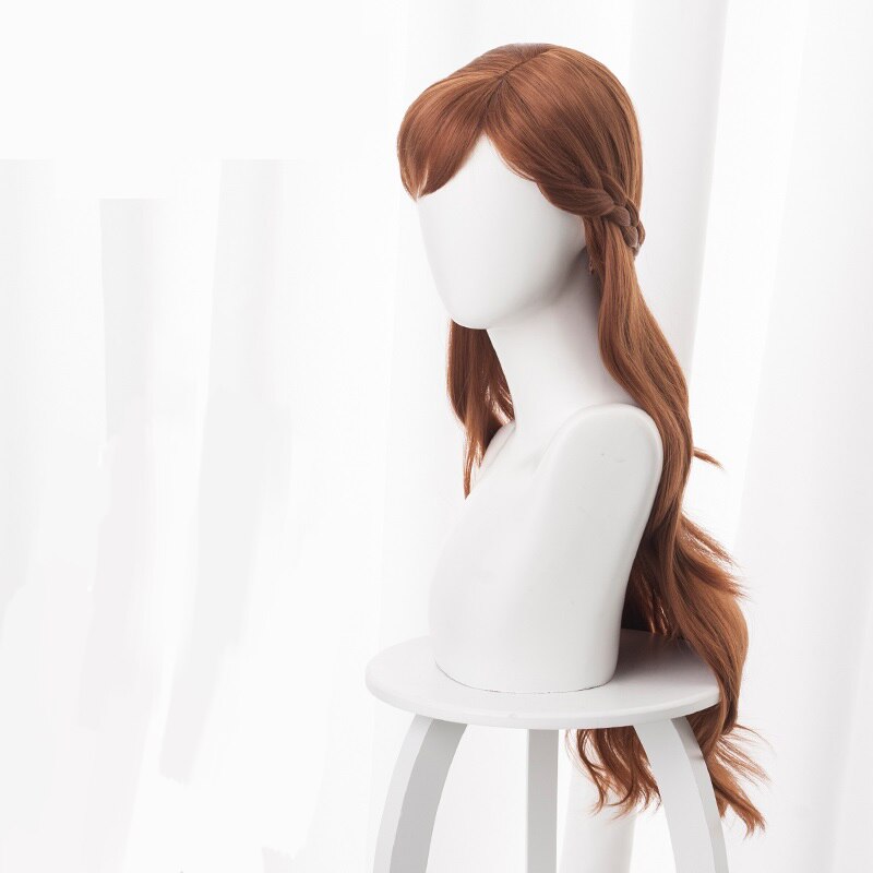 Peluca hecha a mano de pelo sintético largo ondulado recogido.