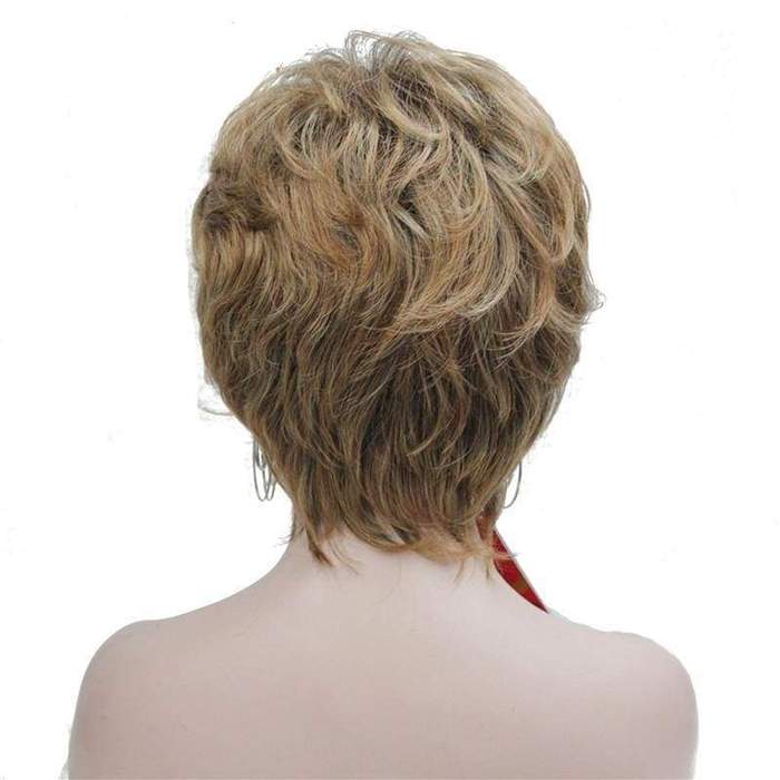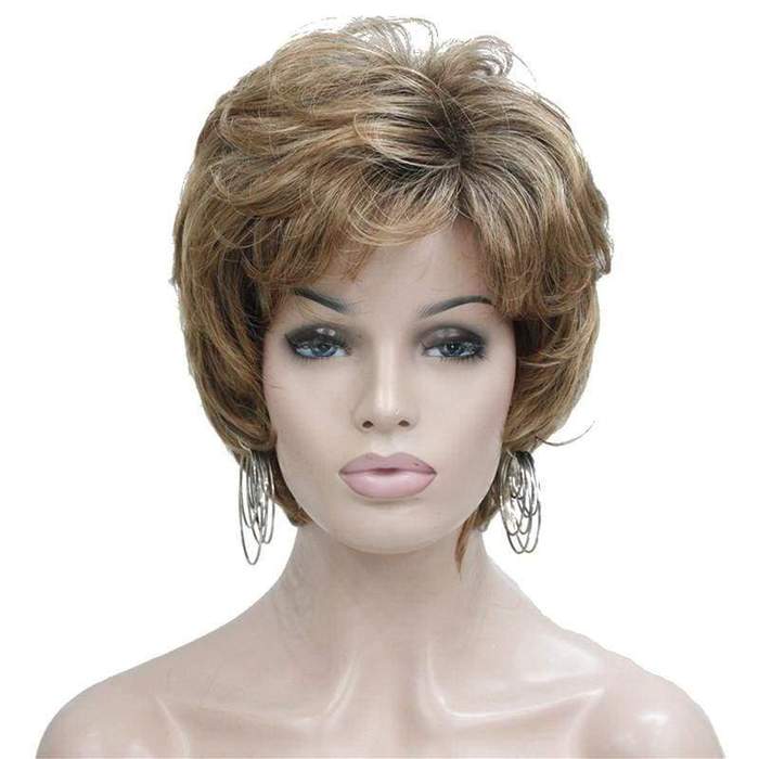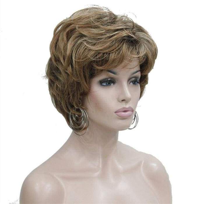 Peluca de pelo sintético ondulado rubio corto cordado hecho a mano