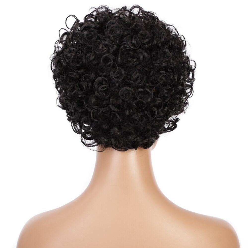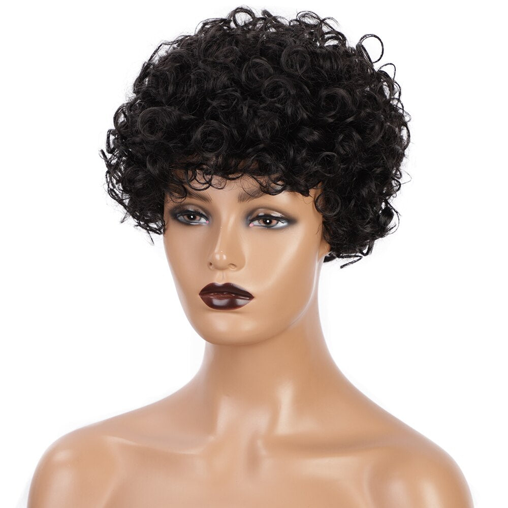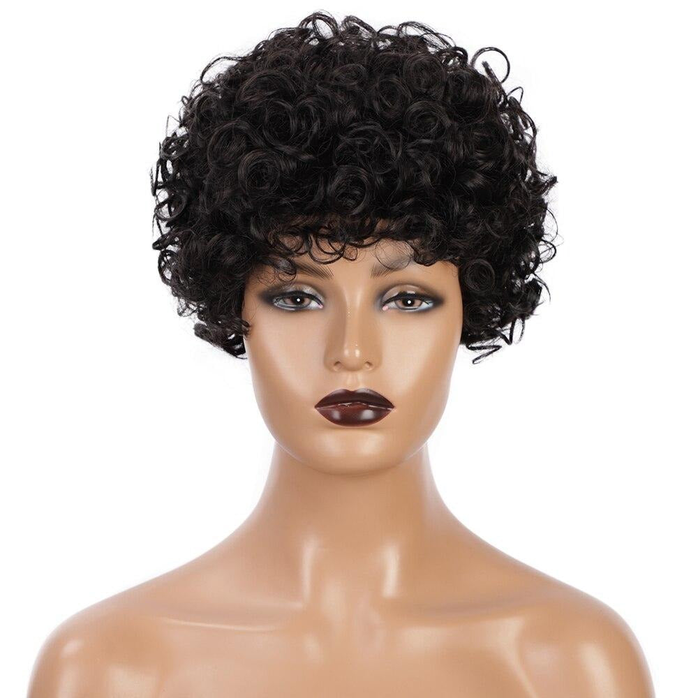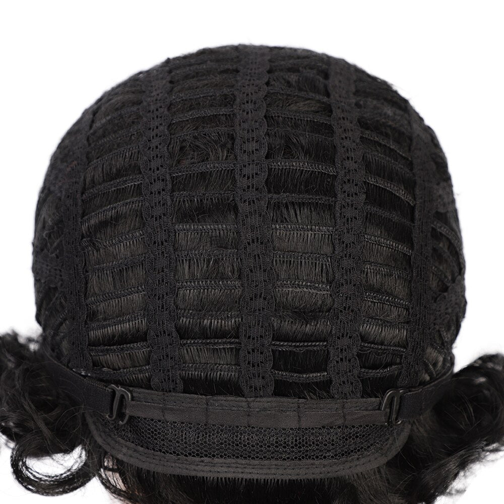 Peluca de pelo sintético negro rizado corto hecho a mano