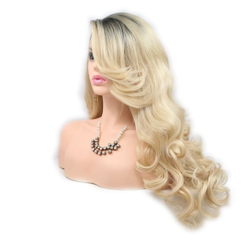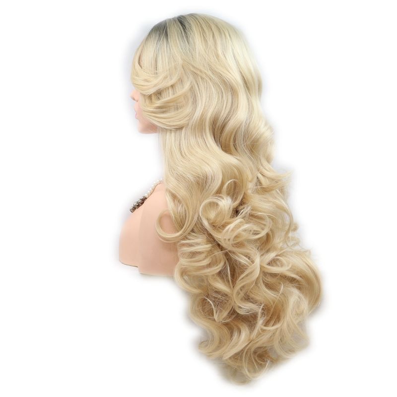 Peluca de pelo sintético ondulado largo hecho a mano