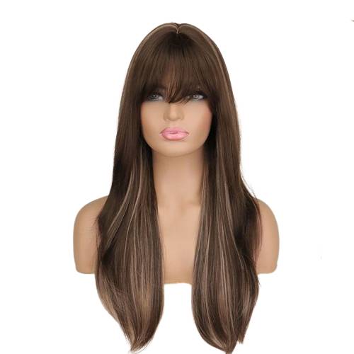 Peluca hecha a mano de pelo sintético, largo ondulado.