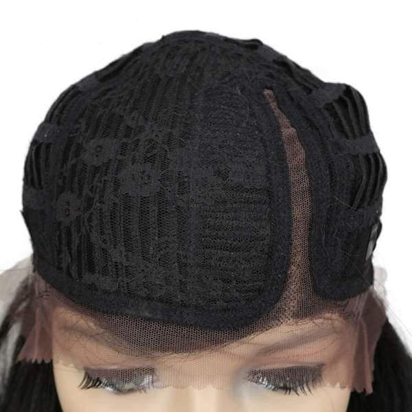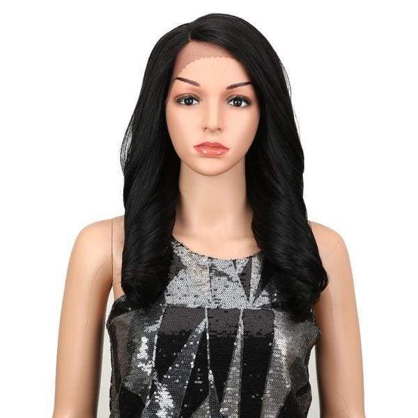 Peluca hecha a mano de pelo sintético largo ondulado con encaje frontal