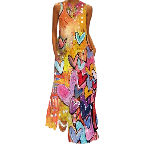 Vestido largo. Cuello en V. Sin mangas. Multicolor.