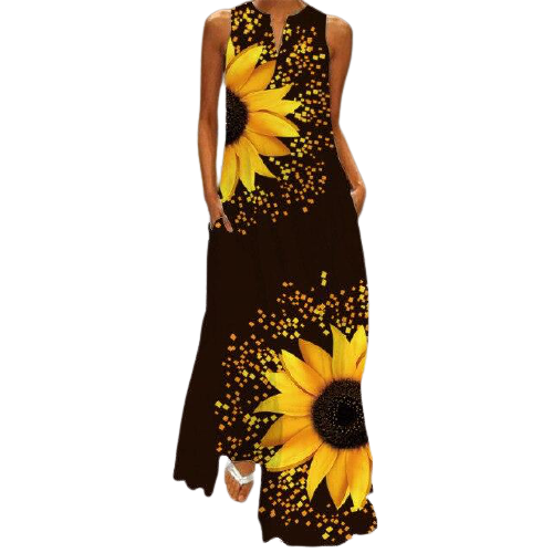 Vestido largo. Cuello en V. Sin mangas. Multicolor.